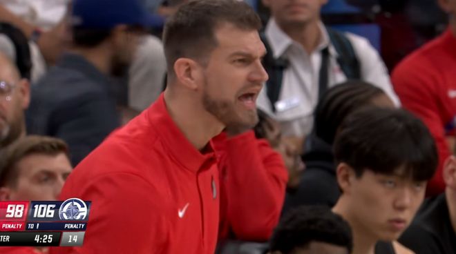上一场刚刚带队战胜勇士的开拓者临时主教练斯普利特犯下大错,他在面对快船的这场比赛确实是有点太昏庸了,整个球队的内线已经被打爆的情况下,就是不上杨瀚森。小杨最终只打4分20秒,1中0拿下2分1篮板,下半场惨遭弃用。结果球队在内线丢分太多,最终遭致了一场大败。